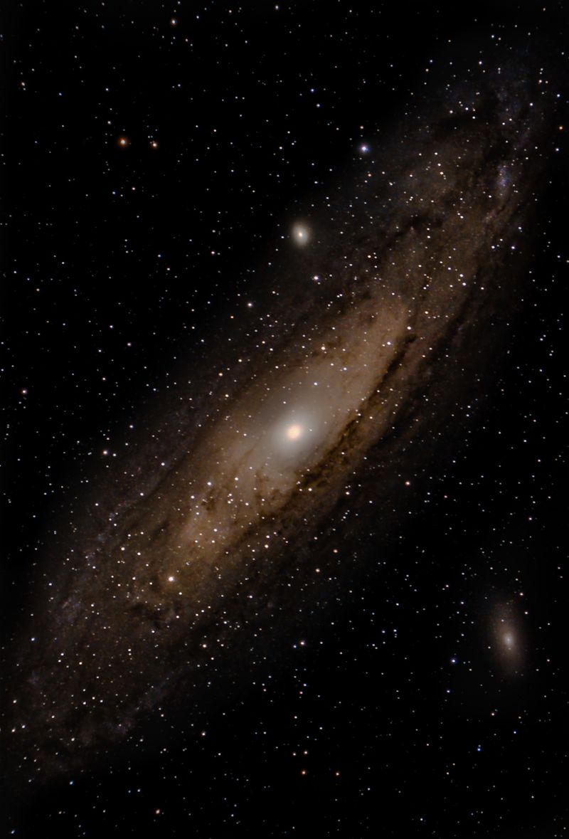 Qui dit peu lumineuse, dit temps de pose unitaire nécessairement long. Pour ma part, le S30 limite à 60 s, mais on pourrait monter à 180–300 s. Et, vu la taille de M31, une focale relativement courte est préférable.